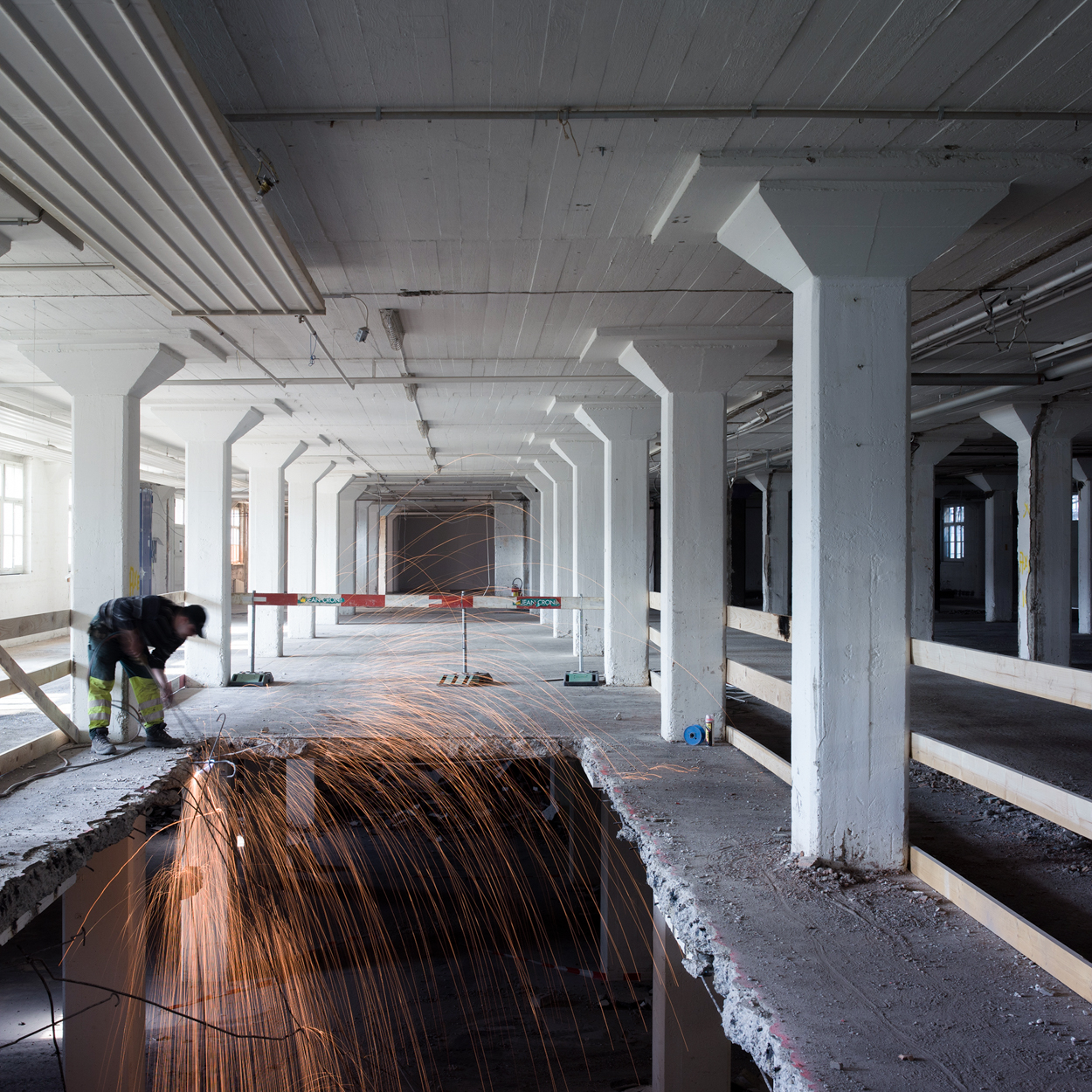 Transitlager Münchenstein construction process, Bjarke Ingels Group.
